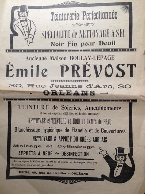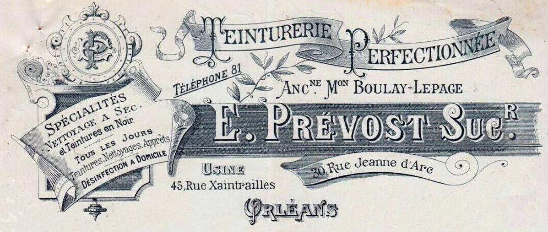 La teinturerie Prévost était installée à Orléans au 30, rue Jeanne d'Arc .